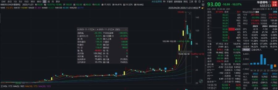 二级市场方面,自11月4日起,公司股价持续攀升,连红9天股价升至历史新高,收获11月10日当周最牛股称号。本周(11月17日—21日)公司自周一盘中一度触及155元/股的高点后持续回落,本周累计跌33.19%。截至11月21日,公司股价报93.00元/股,总市值约148亿元。